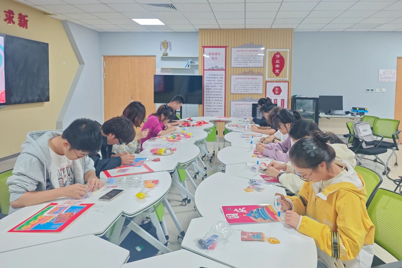 活动聚焦文化传承与情感表达,精心设置了米粒绘画、创意粘土等手工实践环节,并围绕“红动中华”“月下华柱”“天坛祈年”“长城蜿蜒”四大主题展开创作。现场,同学们以匠心巧手为笔,以真挚爱国情为底色,将满腔热忱化为指尖的细腻创作。颗颗米粒,粘贴出祖国的壮丽图景;团团彩泥,塑捏出民族的璀璨符号。在一粘一贴、一揉一捏之间,家国情怀化为具象的生动表达,展现出青年一代对祖国繁荣昌盛、国泰民安的美好祈愿与坚定信念。